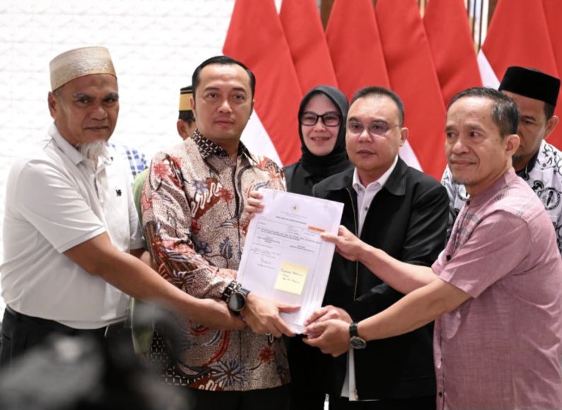 Raut lega dan haru terpancar dari wajah, Drs. Abdul Muis dan Drs. Rasnal, M.Pd, setelah menerima langsung surat rehabilitasi yang diberikan Presiden Prabowo Subianto.