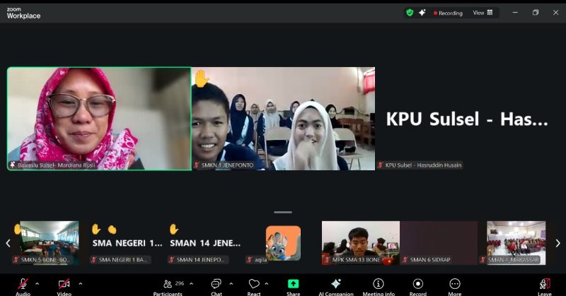 HALLOMAKASSAR.COM – Dinas Pendidikan Provinsi Sulawesi Selatan menyelenggarakan kegiatan sosialisasi secara daring melalui aplikasi Zoom dalam rangka pembekalan pelaksanaan Pemilihan Ketua OSIS (Pilketos) serentak tingkat SMA se-Sulawesi Selatan tahun ajaran 2025/2026.