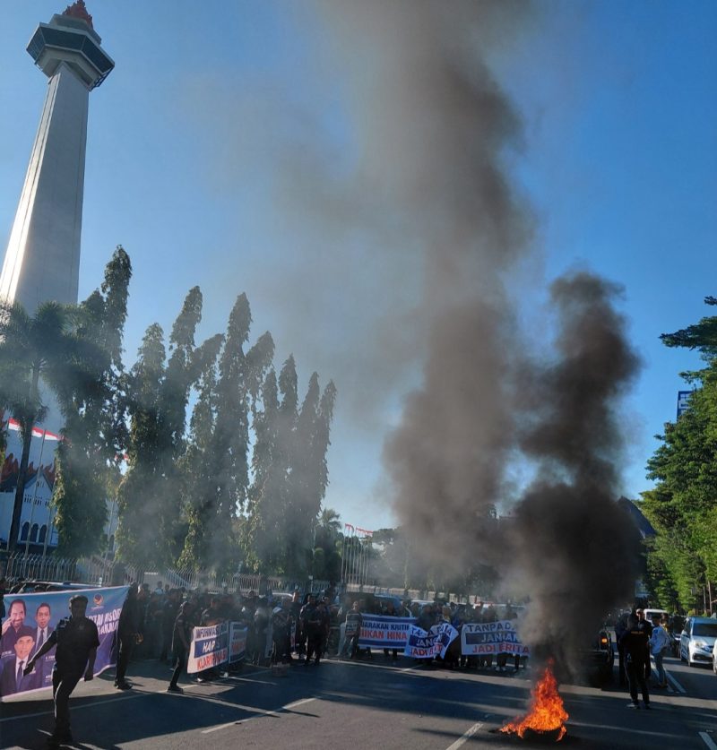 HALLOMAKASSAR.COM –Kader NasDem se – Sulawesi Selatan menggelar aksi unjuk rasa di depan Monumen Mandala, Jalan Jenderal Sudirman, Makassar, Kamis, (16/4/2026) sore.