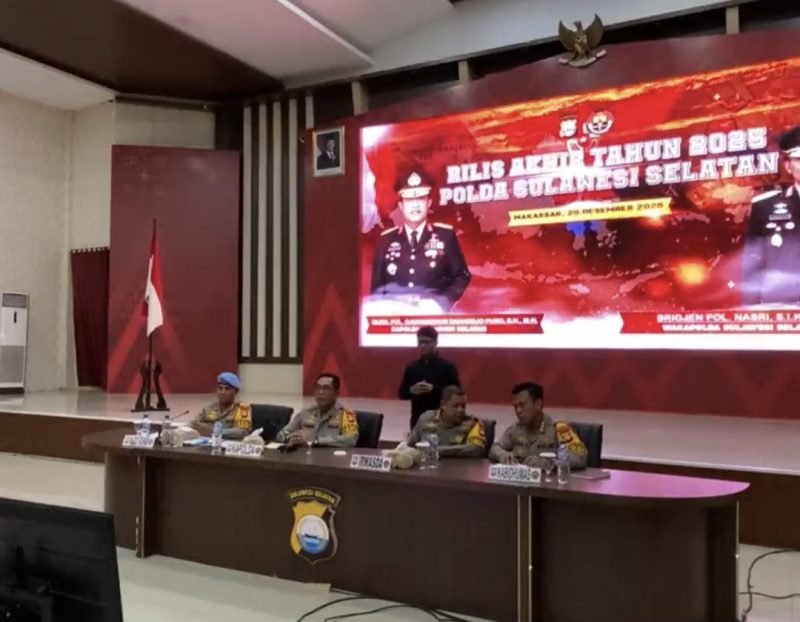“Untuk tindak pidana umum, terjadi penurunan jumlah perkara dibandingkan tahun sebelumnya,” ujar Irjen Pol. Djuhandhani dalam konferensi pers akhir tahun yang digelar di Aula Mappaodang, Mapolda Sulsel, Senin (29/12).