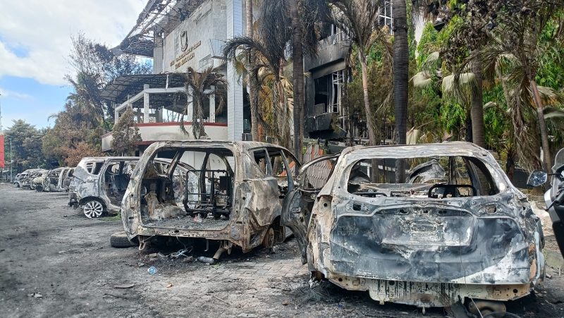 Kebakaran yang melalap hampir seluruh bagian gedung dewan itu memang meninggalkan kerusakan parah. Tidak hanya bangunan, puluhan mobil dan motor yang terparkir di area gedung juga hangus terbakar. Kondisi tersebut membuat proses pelacakan titik api rumit.