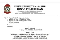 HALLOMAKASSAR.COM – Dinas Pendidikan Kota Makassar mengeluarkan surat edaran terkait pelaksanaan pembelajaran daring (online) untuk seluruh satuan pendidikan jenjang PAUD/TK, SD, dan SMP, baik…